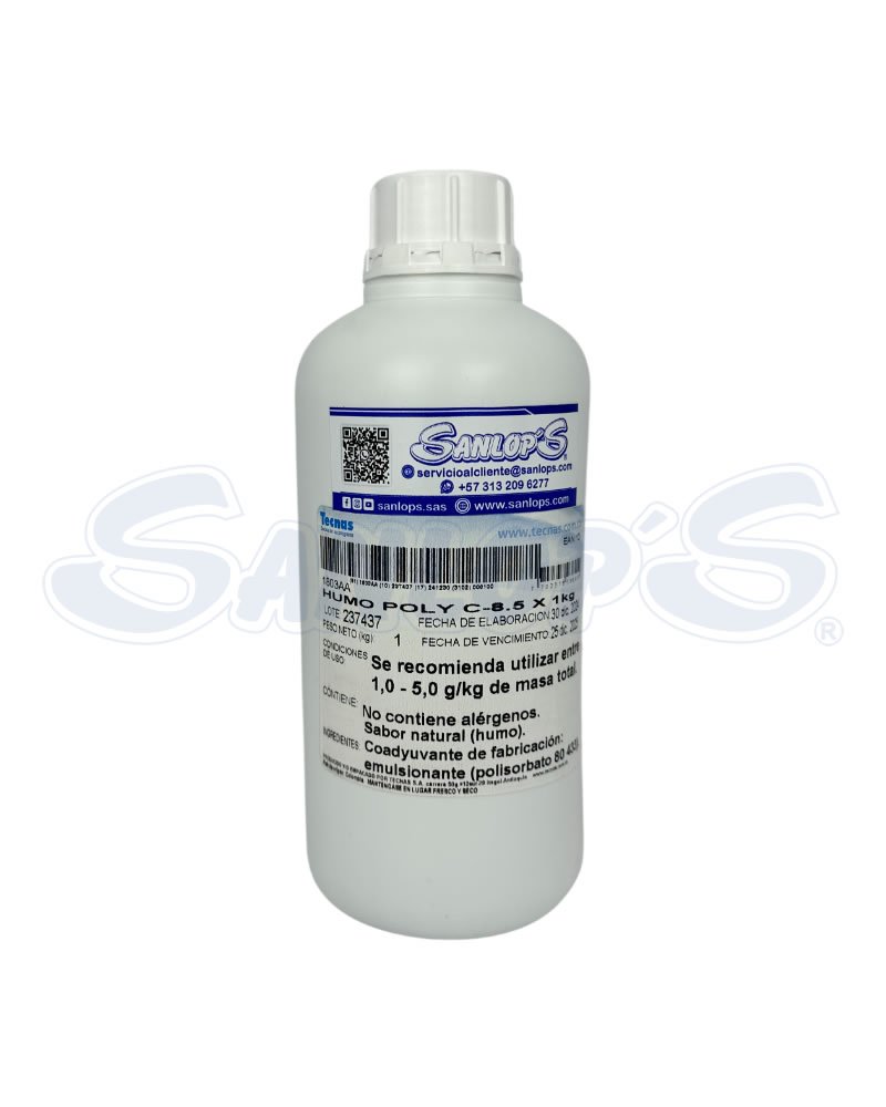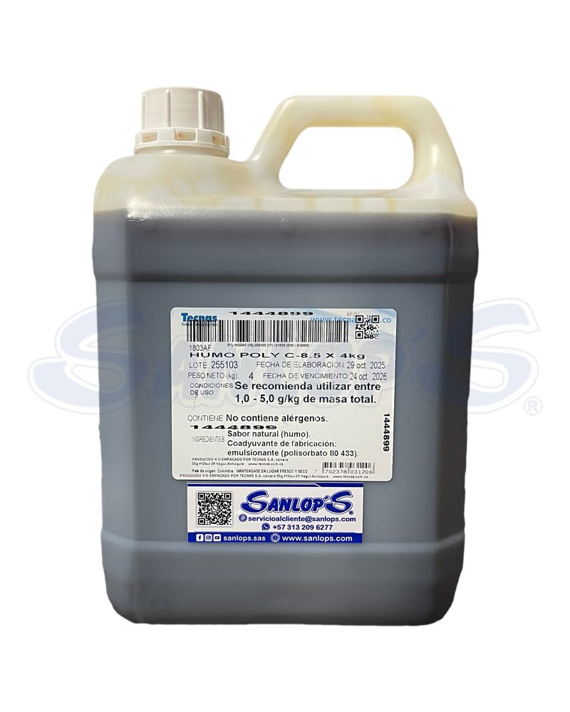 El Humo Poly C-8.5 líquido marca Tecnas es un saborizante ahumado líquido natural diseñado para la industria alimentaria, específicamente para dar sabor y color a productos cárnicos (como salchichas, chorizos, chuletas ahumadas, jamones), así como a salsas, quesos y otros alimentos.
