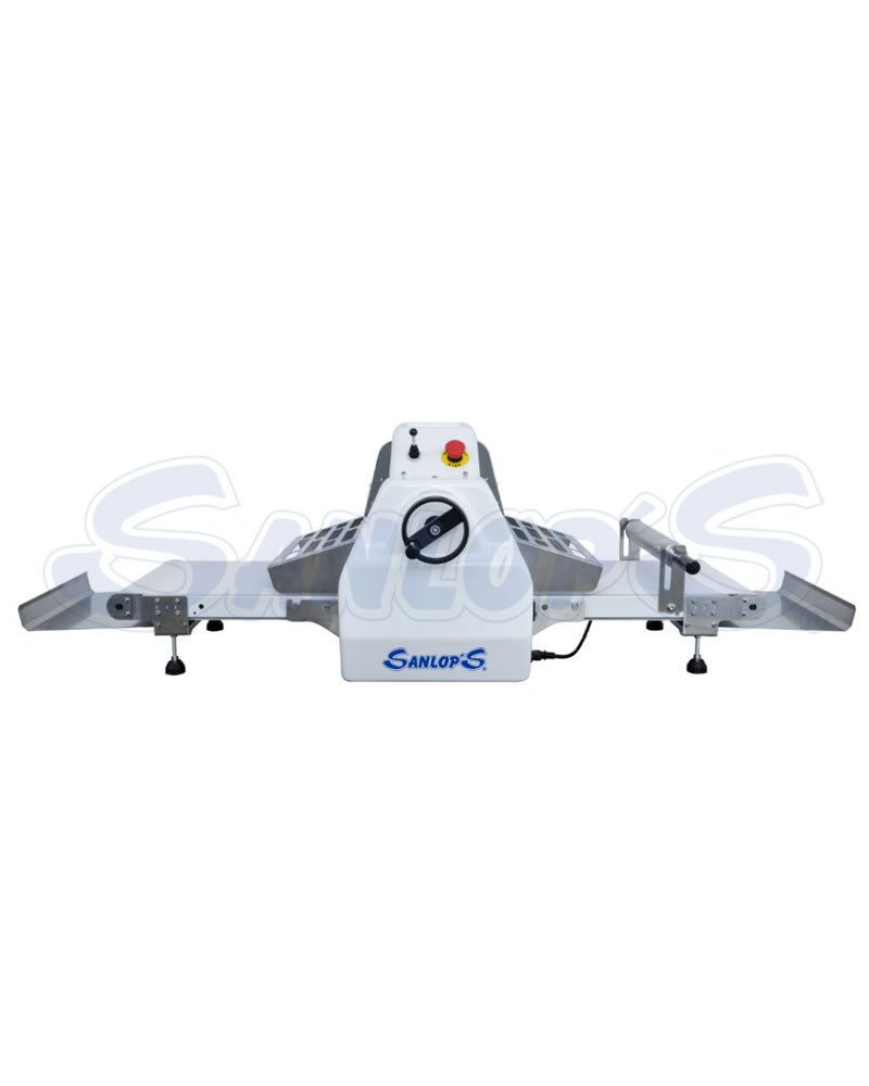 Laminadora para pastelería marca JAVAR, modelo de mesa. Bandas de 72×52 cm y altura de cilindro regulable de 1 a 40 mm. Control con joystick y botón de paro de emergencia. Incluye un rodillo para el pastón, no incluye pedales. Potencia eléctrica 0,4 kW (0,54 HP), tensión 110 Volt, 60 Hz, 1 fase. Dim 156x82xH55 cm, peso neto 102 kg. Origen: China